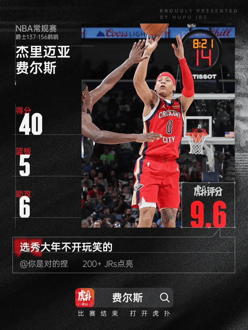 布朗35分9板、费尔斯40分5板6助3断,今日最佳你选谁?