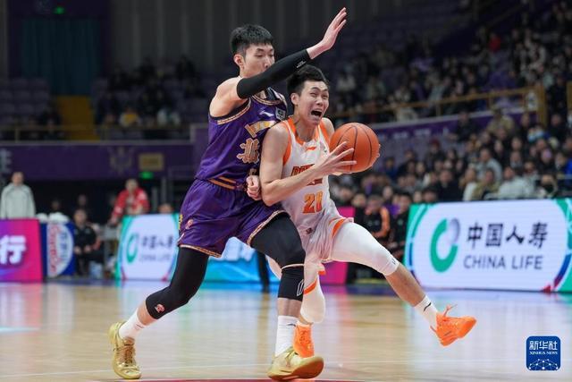 1月15日,江苏肯帝亚队球员庞峥麟(右)在比赛中进攻。新华社记者 谢晗 摄